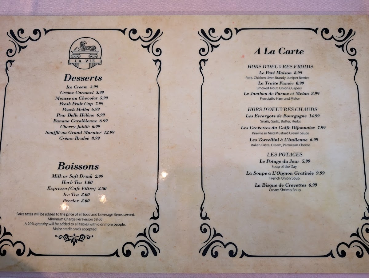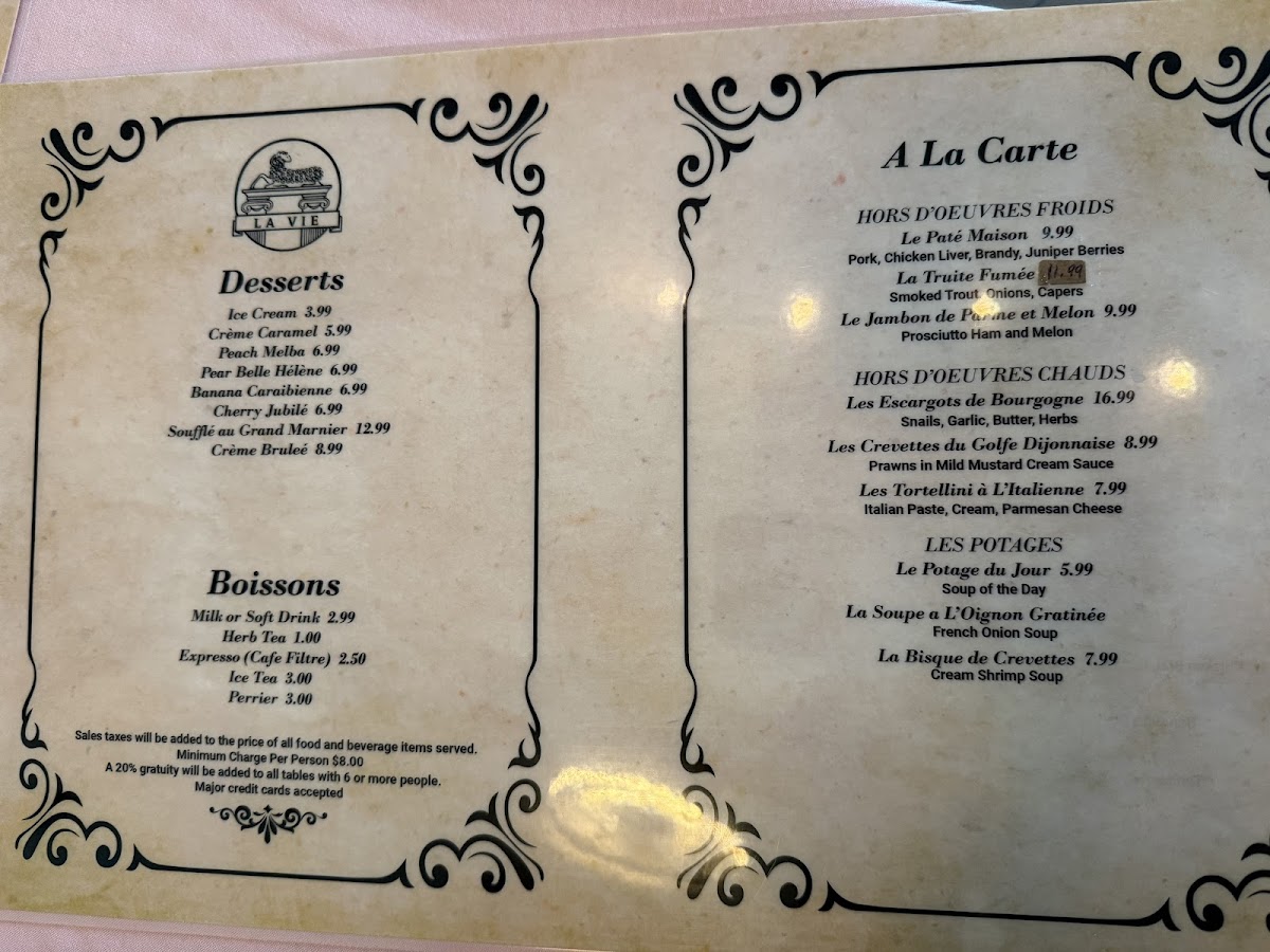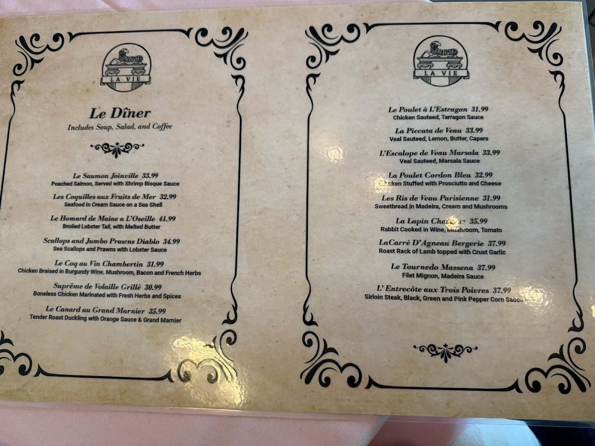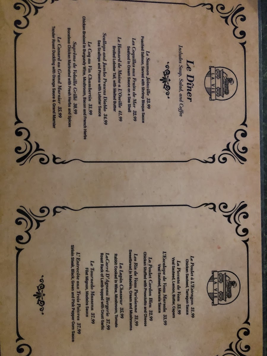 The La Vie French Restaurant Menu offers a delightful journey through classic French cuisine right in the heart of Rosemead. Located at 2547 San Gabriel Blvd, this charming spot serves a variety of dishes that showcase the rich, savory flavors of France. Whether you're in the mood for a warm, buttery croissant or a hearty coq au vin, each dish is crafted with fresh, high-quality ingredients.